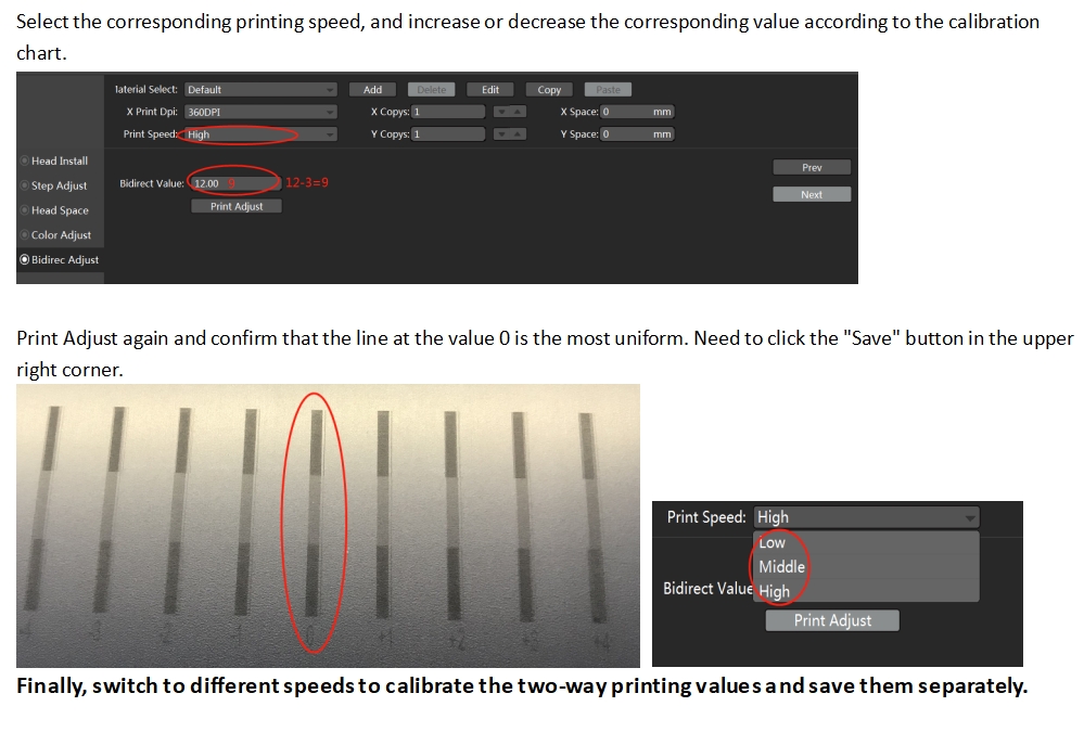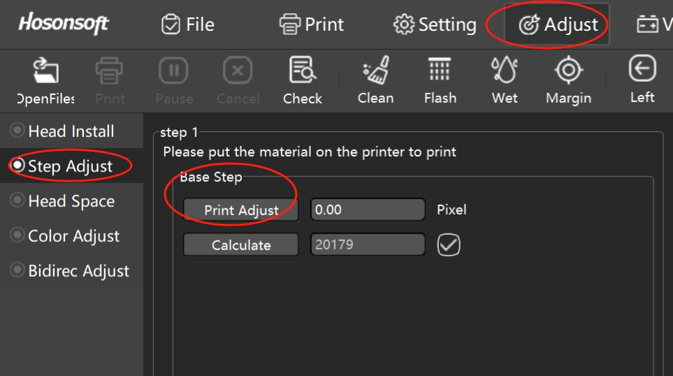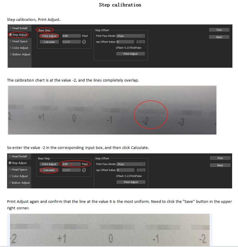 If the print head has been installed before the factory, only need to calibrate the Base step,