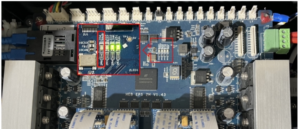 After confirming that the print head data line is connected correctly, turn it on, and observe whether the "ERROR" light on the car board is on. If the light is on, it is abnormal. Turn it off immediately and check.