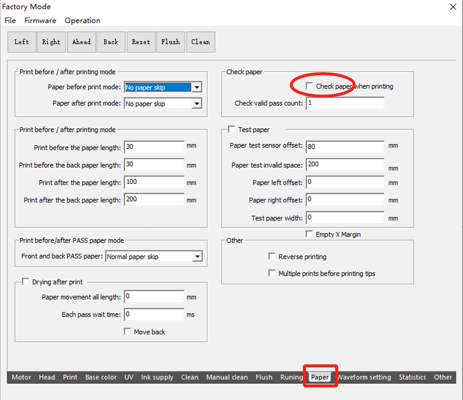 The paper measurement function can be temporarily turned off through software, as shown in the figure: