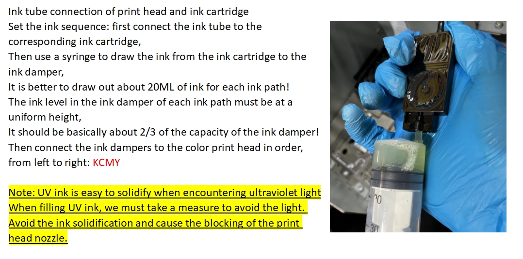 Check if any ink tubes are broken or folded, if so, do not turn on the machine power, repair them first.)