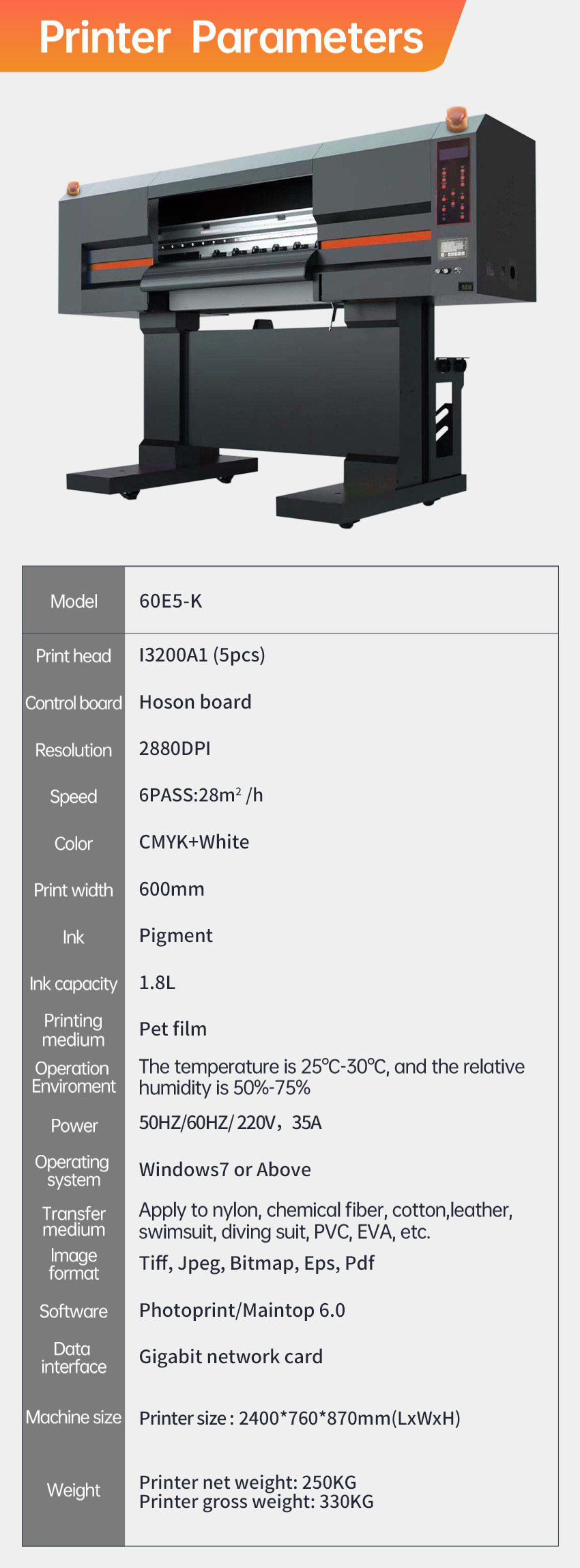 60E5-K DTF T-shirt Printer