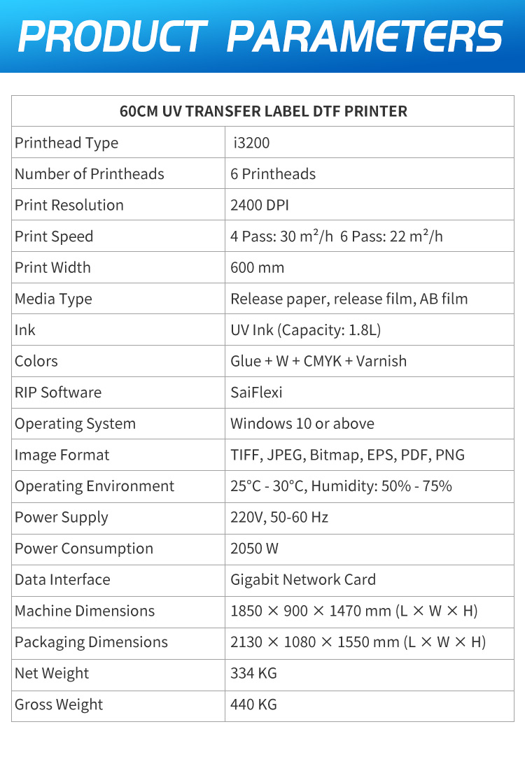 6 HEADS 60CM UV TRANSFERLABEL DTF PRINTER