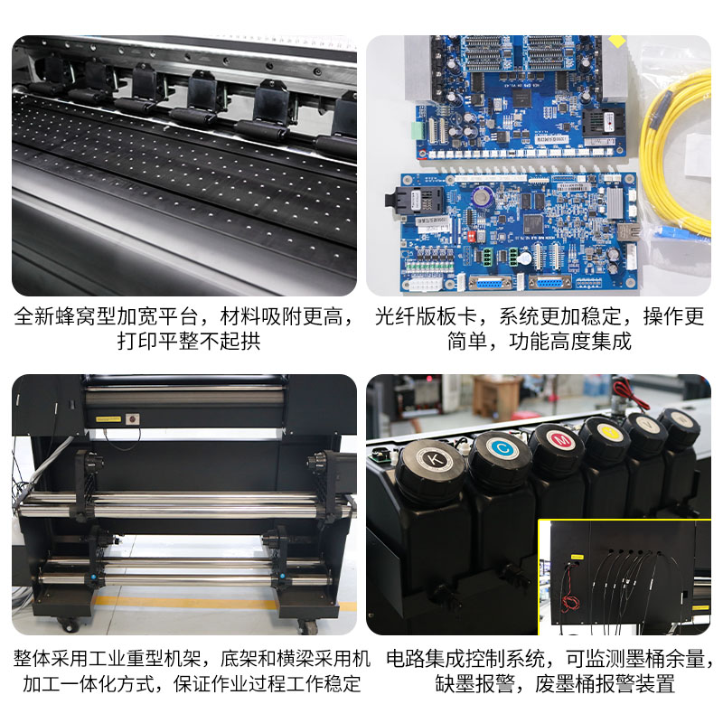 能做出這么高品質(zhì)的標(biāo)簽,全靠設(shè)備的好配置。6個工業(yè)級I3200噴頭一起工作,能精準(zhǔn)控制墨水用量,打印出來的顏色和設(shè)計圖幾乎一模一樣,不管是復(fù)雜的漸變色、細(xì)細(xì)的線條,還是高端的燙金效果,都能還原得清清楚楚、漂漂亮亮。而且顏色不容易掉,細(xì)節(jié)也不模糊,用再久都能保持精致。另外,設(shè)備底部是蜂窩平臺,加上厚重的機(jī)架,運行起來特別穩(wěn),不會晃來晃去,打印的時候不會歪、不會偏,覆膜也平整沒有氣泡,燙金位置也絲毫不差,每一枚標(biāo)簽都長得一樣標(biāo)準(zhǔn),徹底解決了普通設(shè)備打印歪、覆膜起皺的麻煩。