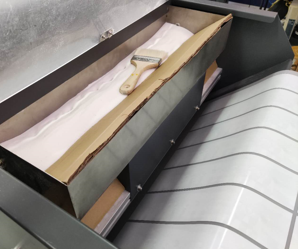 2、打印機(jī)打印的圖案輸出到抖粉機(jī)進(jìn)行預(yù)加熱