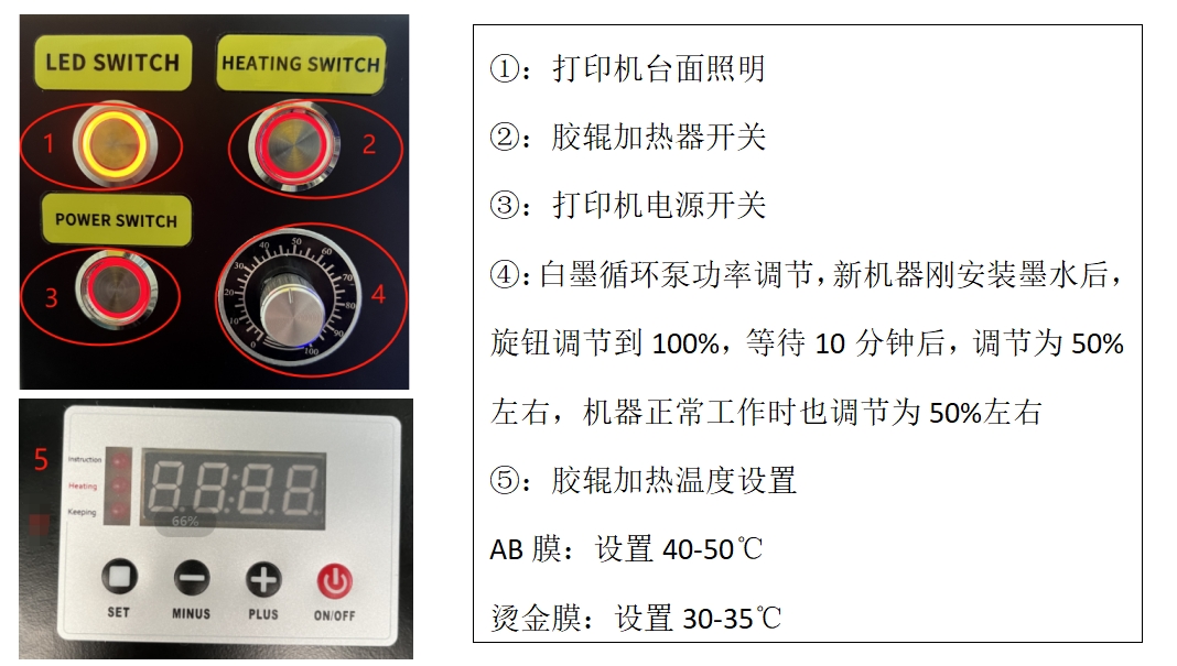 二級(jí)覆膜部分按鈕和溫度設(shè)置(如沒(méi)有二級(jí)覆膜部分,請(qǐng)忽略)