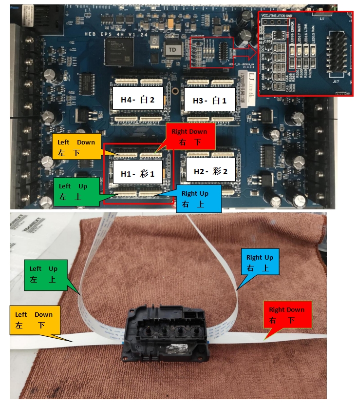 步驟3:打印頭排線連接到頭板和墨囊安裝