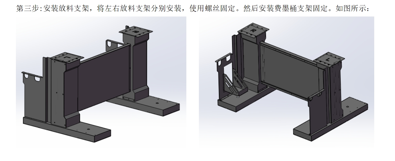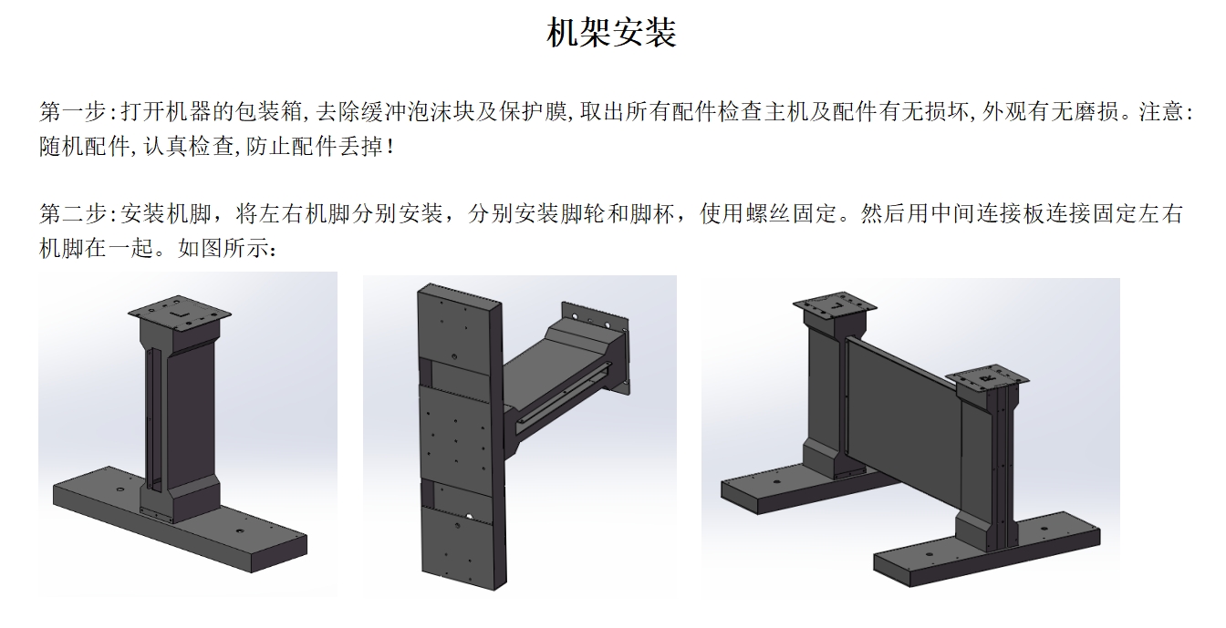根據(jù)圖紙或視頻安裝腳座,安裝腳杯和輪子,固定打印機(jī)。