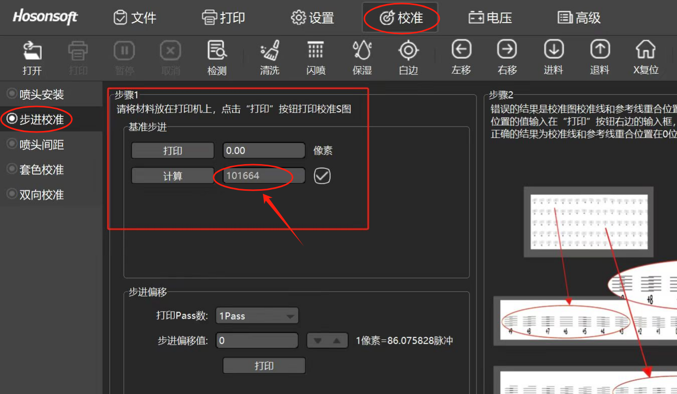 查看軟件的“校準(zhǔn)”-“步進(jìn)校準(zhǔn)”-“基準(zhǔn)步進(jìn)”菜單里面的數(shù)值,