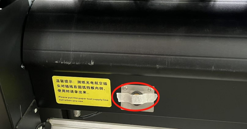 查看打印機后面的材料感應(yīng)器的插頭是否連接,如圖: