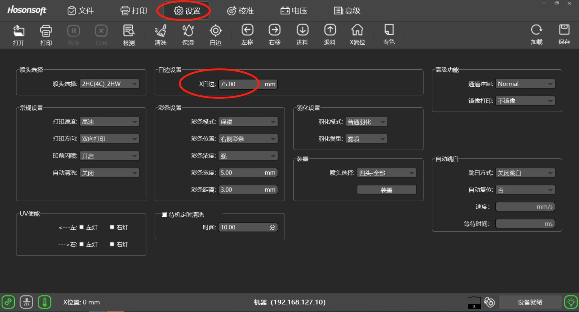 比如機器可打印寬幅為60cm,作業(yè)寬度為60cm,如果打印起點設為100mm,有可能機器無法打印。