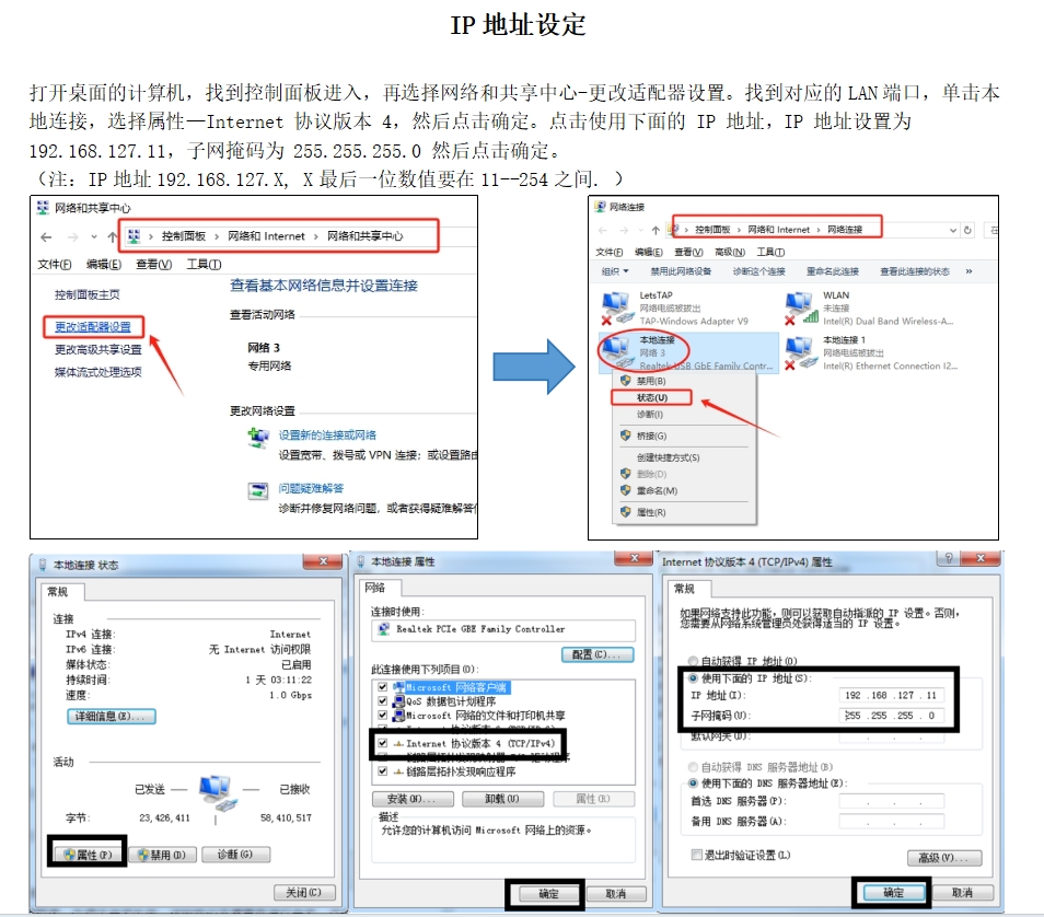 步驟2:檢查電腦對應網(wǎng)口的IP地址是否設(shè)置正確