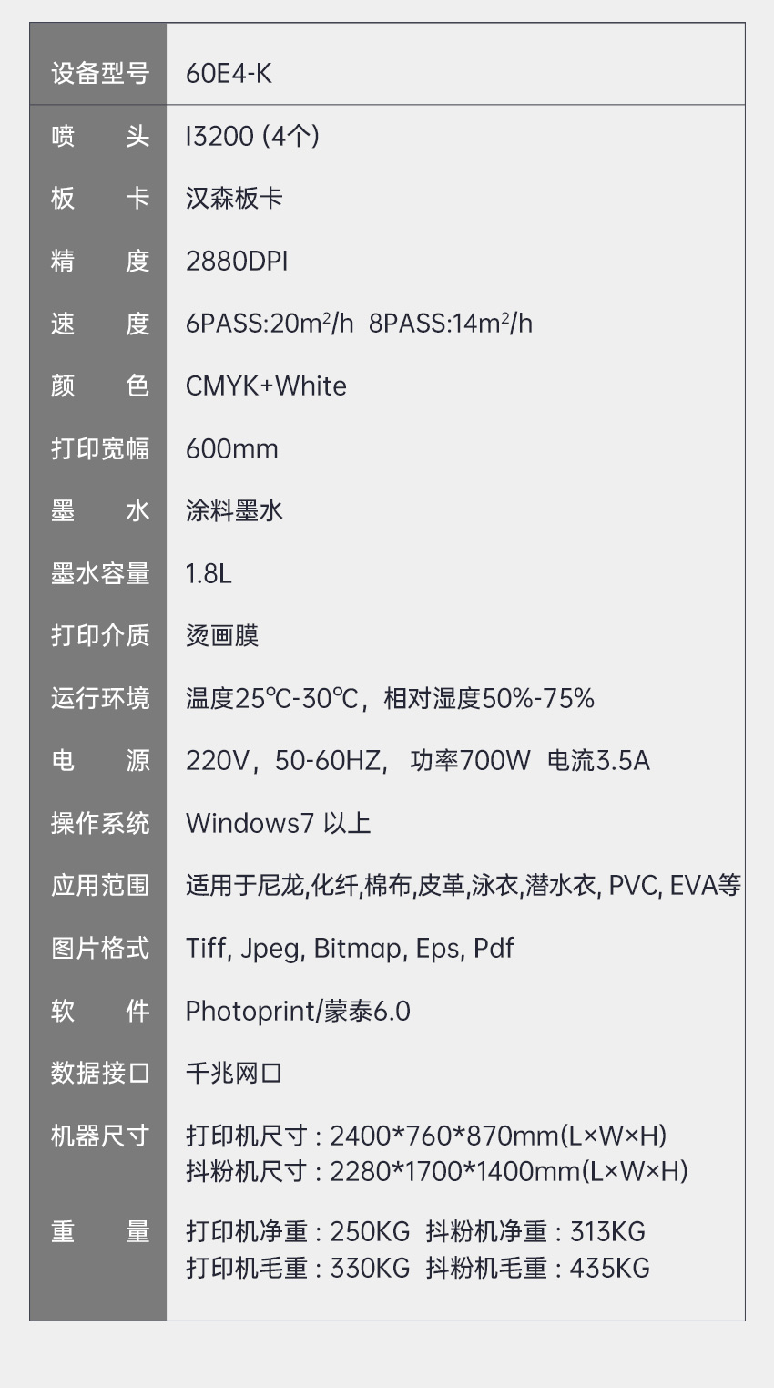 60E4-K 四頭白墨燙畫打印機(jī)歐美暢銷款