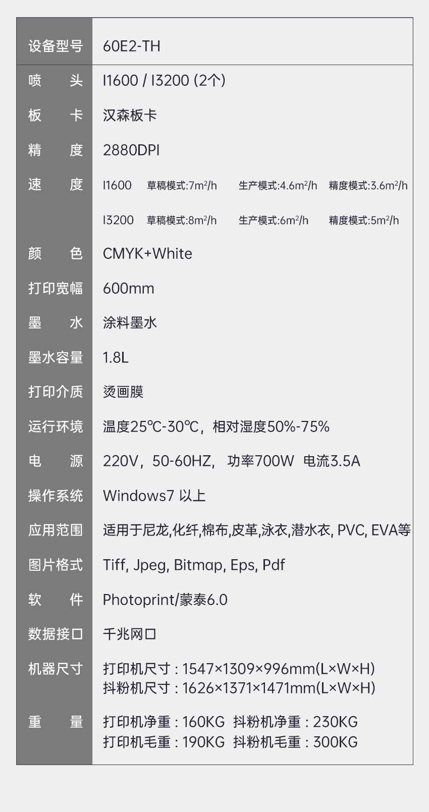 60E2-TH 雙頭白墨燙畫(huà)打印機(jī)環(huán)保經(jīng)濟(jì)款