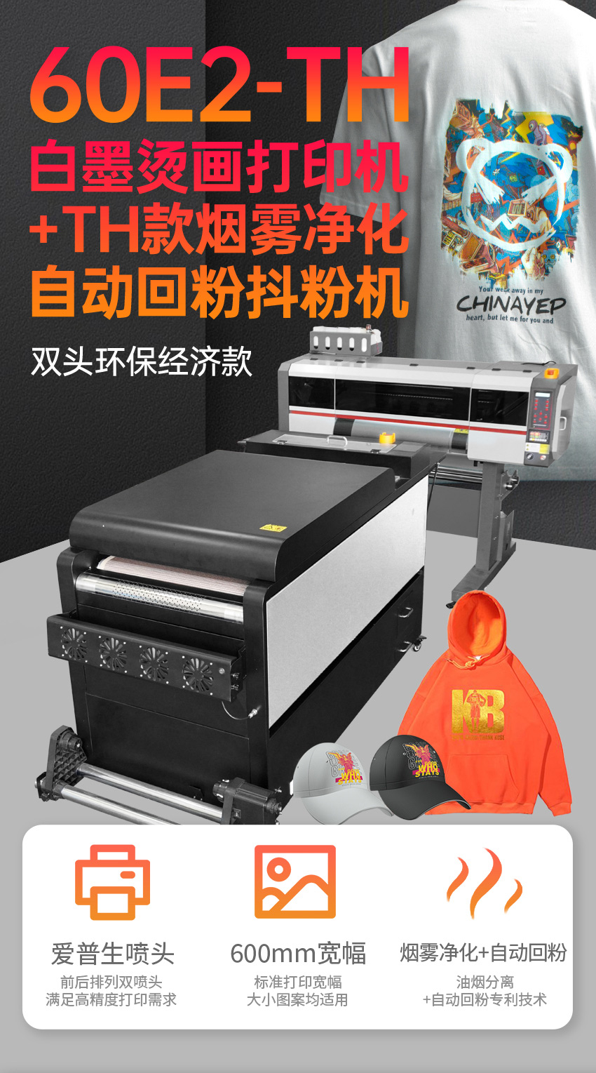 60E2-TH 雙頭白墨燙畫打印機+煙霧凈化自動回粉抖粉機