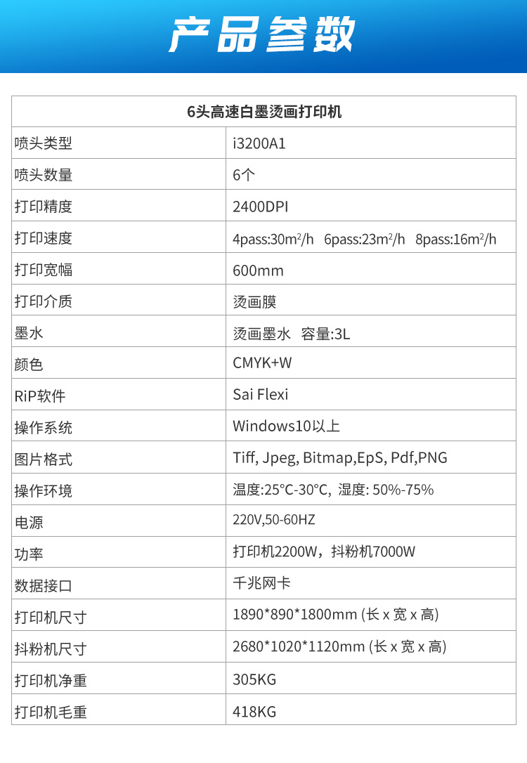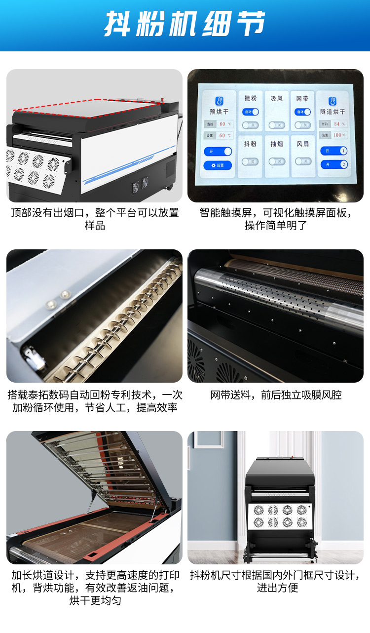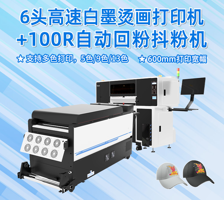 6頭高速白墨燙畫打印機+100R自動回粉抖粉機